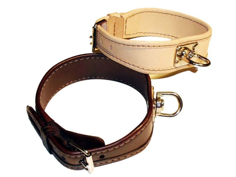 Farbiarsky obojok podšitý tenkou kožou s podloženou sponou, dlhý 70cm. Farba prírodná alebo hnedá.
