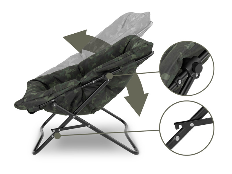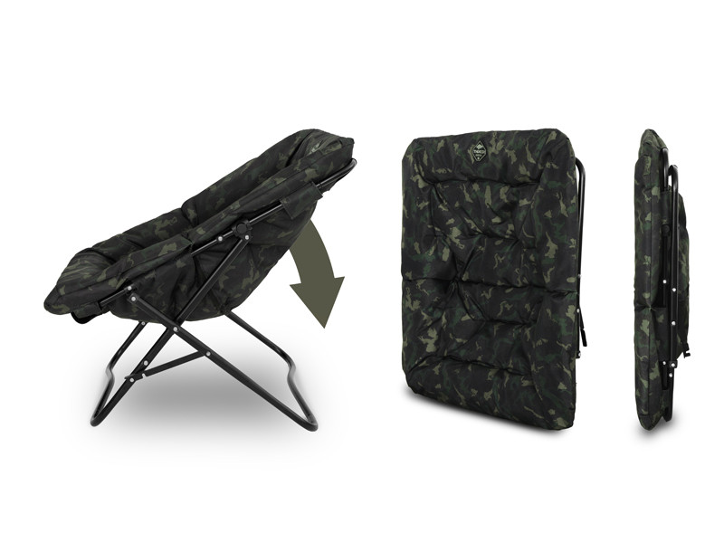 Jeho základ tvorí pevná X-ková kovová konštrukcia, ktorú možno zložiť alebo rozložiť doslova v priebehu sekundy. Tento typ konštrukcie zaručuje vysokú stabilitu a zároveň si po zložení zachováva čo najkompaktnejšie rozmery. Konštrukcia je navyše polohovateľná a za pomoci plastových poistiek si tak môžete kreslo nastaviť až do troch polôh. Aby sa zamedzilo nechcenému zloženiu kresla počas sedenia, je kreslo vybavené zaisťovacím mechanizmom.
