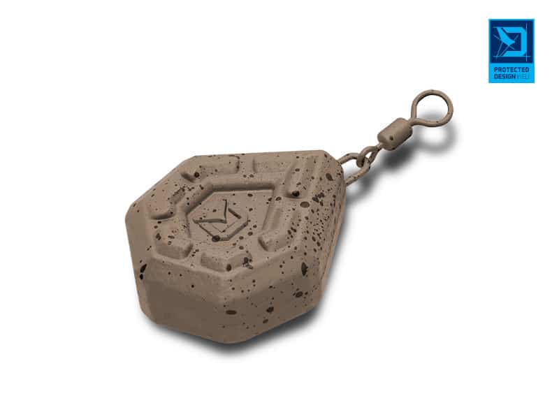 Je inovatívna záťaž dizajnovaná tímom značky Delphin, ktorú je možné použiť pri love na mäkkom alebo členitom dne, alebo pri love na tečúcich vodách. Jedinečný hranatý tvar umožňuje vytvoriť kompaktnejšiu záťaž, ktorá má pri menších vonkajších rozmeroch rovnakú hmotnosť ako bežne predávané olová podobného typu. To zaručí výborné nahadzovacie vlastnosti a rýchle klesanie ku dnu. Pre docielenie čo najdlhších a najpresnejších hodov je navyše spodná časť záťaže rozšírená, aby sa tu koncentrovalo viac hmoty a tak predlžuje Vaše hody o ďalšie dôležité metre! Výstupky na hlavných plochách záťaže eliminujú kĺzanie po dne. Povrch záťaže je chránený farbou v prírodných odtieňoch hnedej s čiernymi fŕkancami, čo dokonale kamufluje jej prítomnosť na dne. Zväčšené očko na obratlíku umožňuje jednoduchšie a rýchlejšie upevnenie záťaže na montáž.