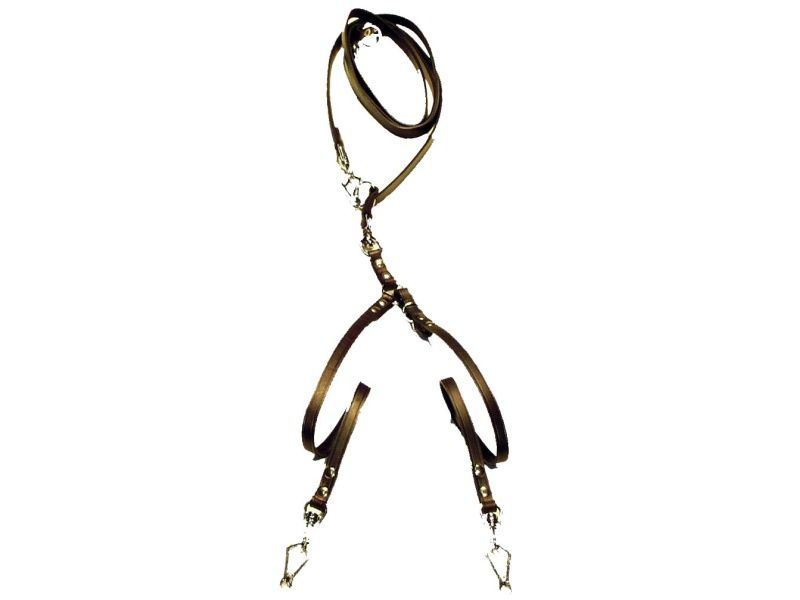Vypúšťacie vodítko pre 2 psov z plochej kože farba hnedá